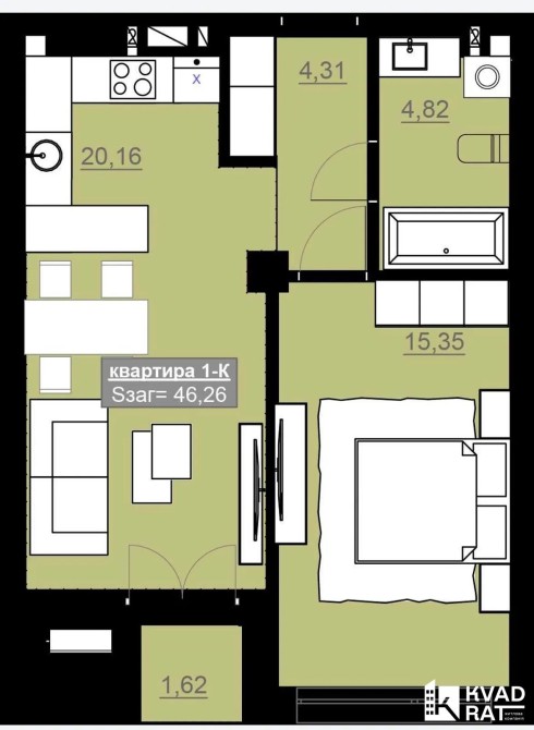 • Загальна площа 48 м2