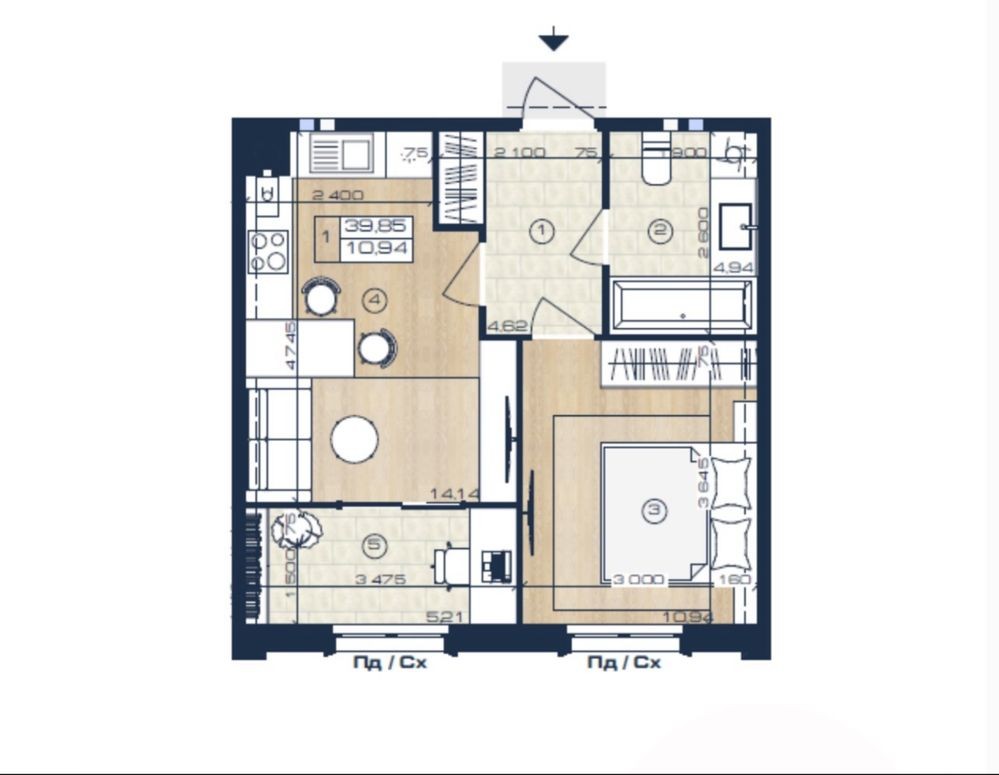 • Загальна площа 39.8 м2