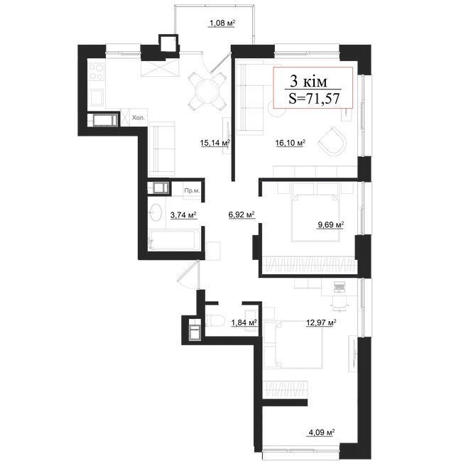 • Загальна площа 71.57 м2