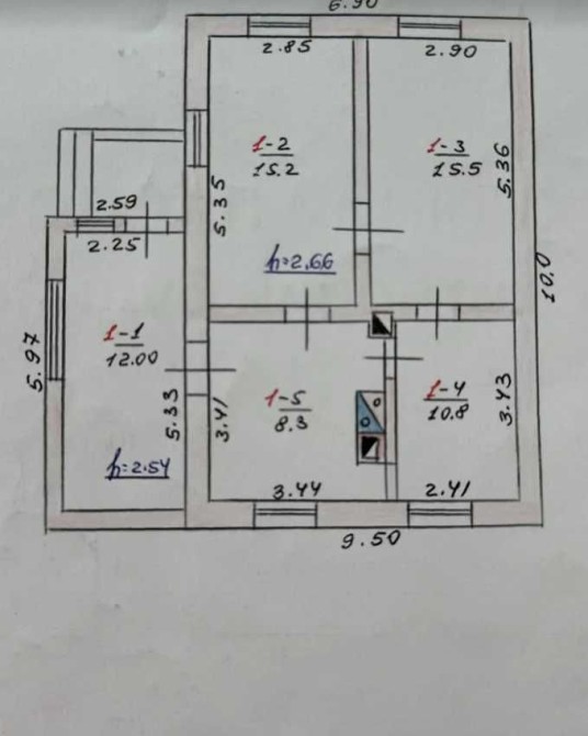 - У будинку 4 кімнати.