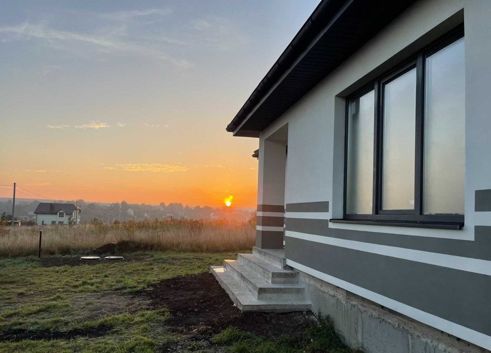 Будинок збудований з дотриманням усіх сучасних будівельних норм. Уже виконані основні чорнові роботи: якісна стяжка підлоги, штукатурка стін, заведено потужну електрику — 3 фази (380В), 15 кВт. Установлено надійні вхідні двері та панорамні склопакети у вітальні.