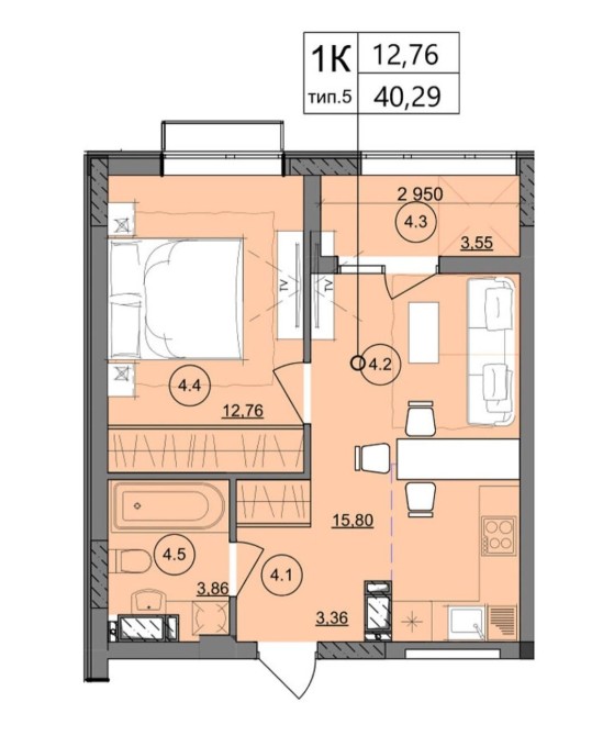 • Загальна площа 43 м2