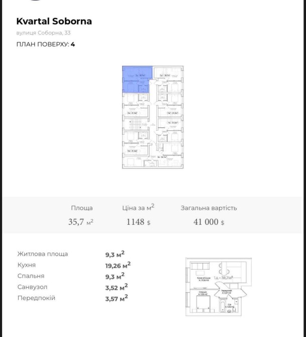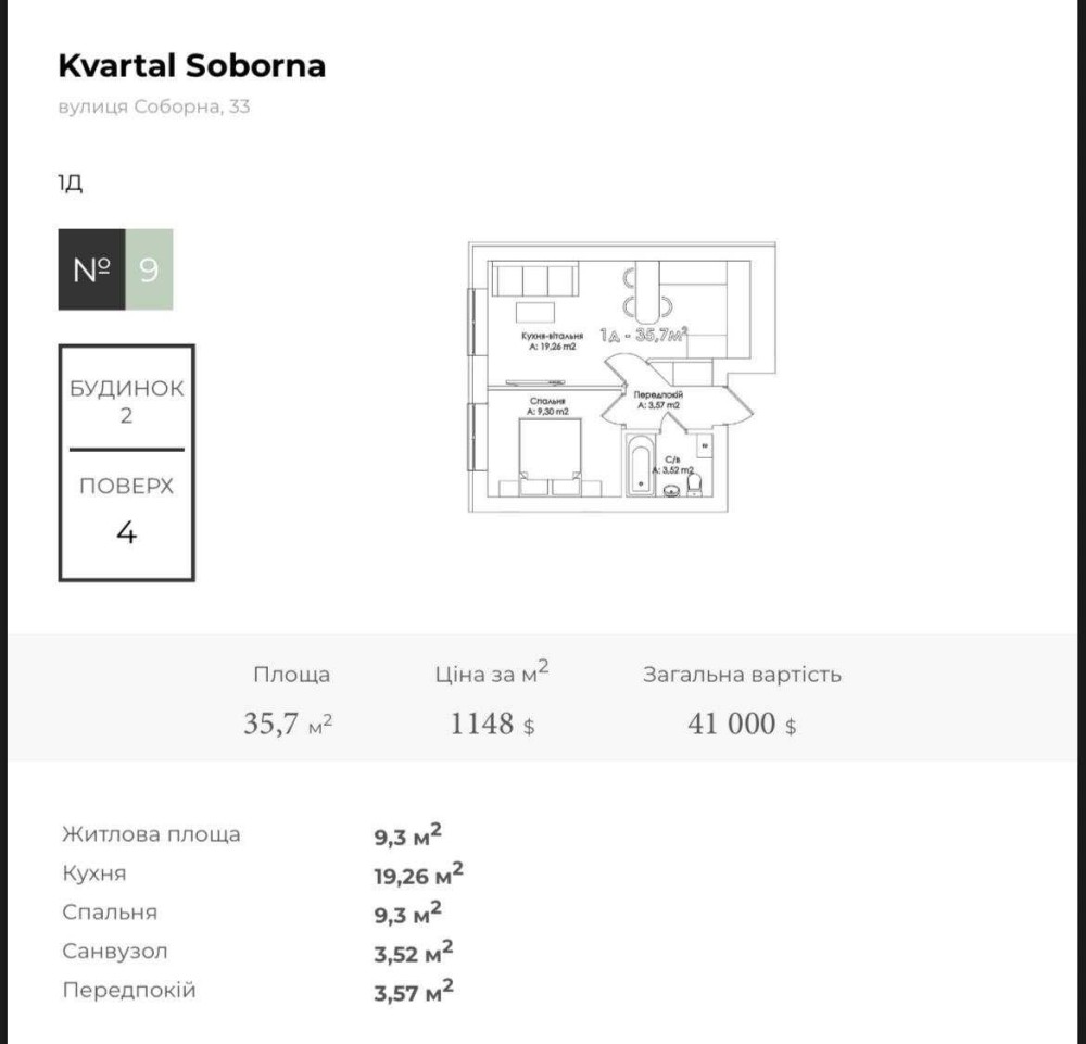 Терміново 1-кімнатна в ЖК Kvartal Soborna