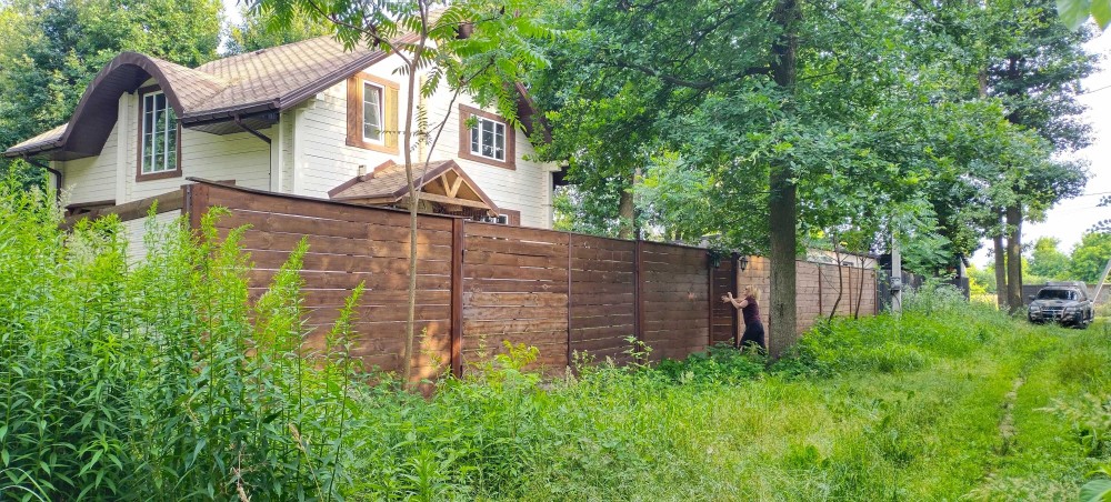 Ділянка – 10 соток, рівна, огороджена металевим парканом; кілька дорослих листяних дерев