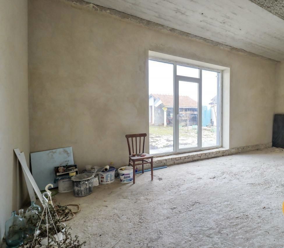 Частично остается мебель. Большой участок( на нем залит фундамент под постройку дома) рядом садик, школа, аптека, банкомат, сельский совет, детская площадка, церковь. Остановка маршрутки на город через дорогу.