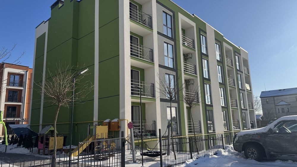 Комплектація: піщано-цементна штукатурка стін, лазерна стяжка підлоги, комунікації заведені в квартиру, якісні вікна та вхідні двері.