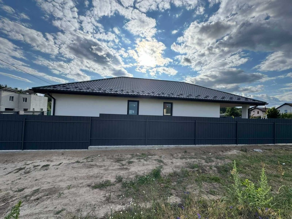 с.Рожівка, новий масив села навпроти соснового лісу, мальовниче місце, вул.Григорія Сковороди, новий сучасний одноповерховий будинок площею 85кв.м, дві спальні, велика кухня-вітальня з каміном, можливе опалення дровами, с/в, гардероб. В будинку зроблено якісний ремонт, заведені і підключені всі комунікації, в тому числі тепла підлога. Земельна ділянка 7,5 сот, огороджена. Гарні сусіди. Ціна:125000у.о з торгом! Без комісії!