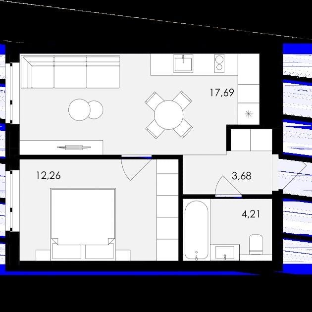 • Площа кухні 17.69 м2