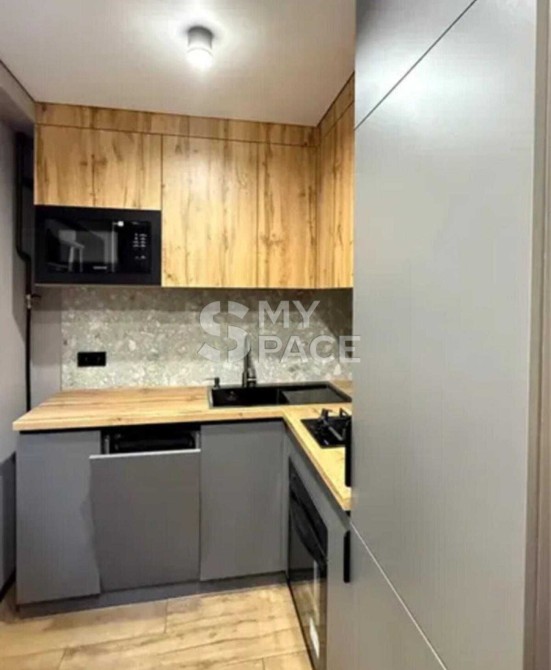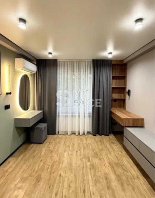 Квартира з новим дизайнерським ремонтом, який робили для себе, завершений близько 3 місяців тому. Повністю замінено електрику та сантехніку, вирівняні стіни та підлога. Встановлена вся нова техніка: телевізор, кондиціонер, прально-сушильна машина, бойлер, вбудований холодильник, мікрохвильова піч, духова шафа, варильна поверхня, посудомийна машина. Продумане освітлення — декілька рівнів світла з використанням LED підсвітки.
