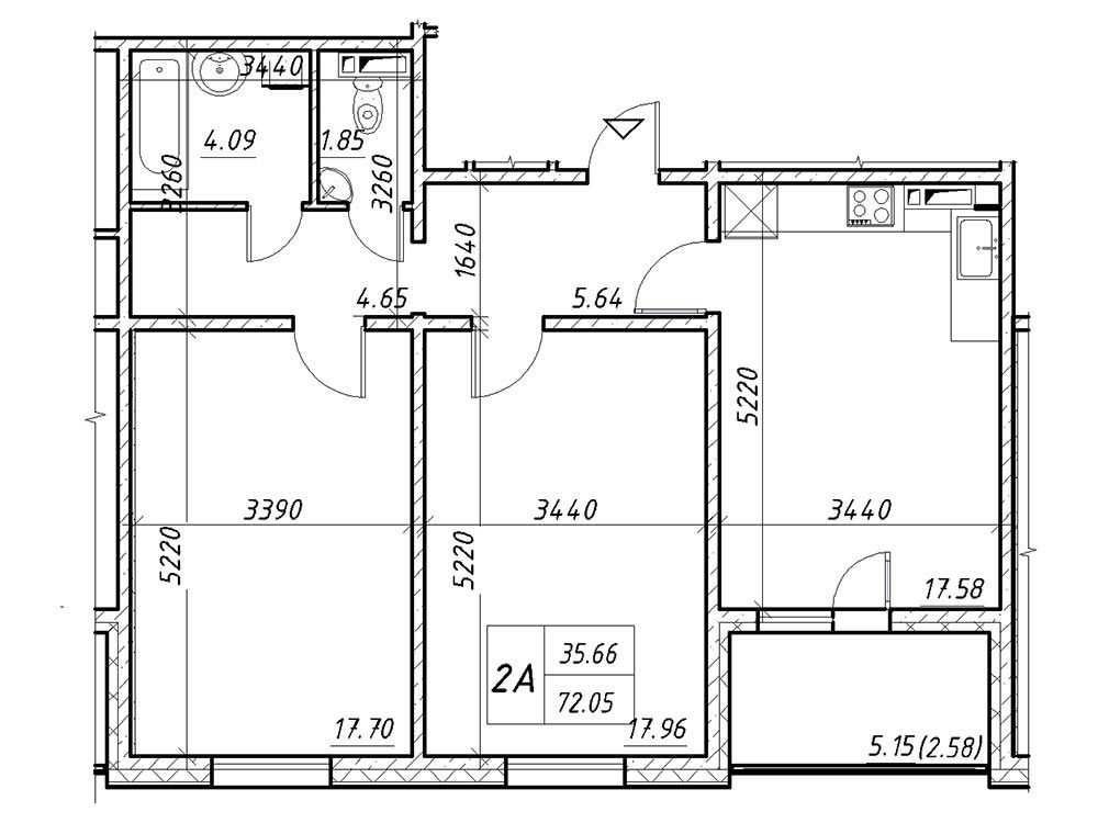 Двокімнатна 72.05м"