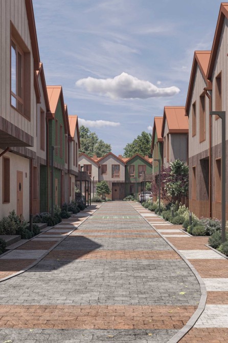 - Зовнішні стіни будинку: декоративне оздоблення з елементами модифікованої глини.
