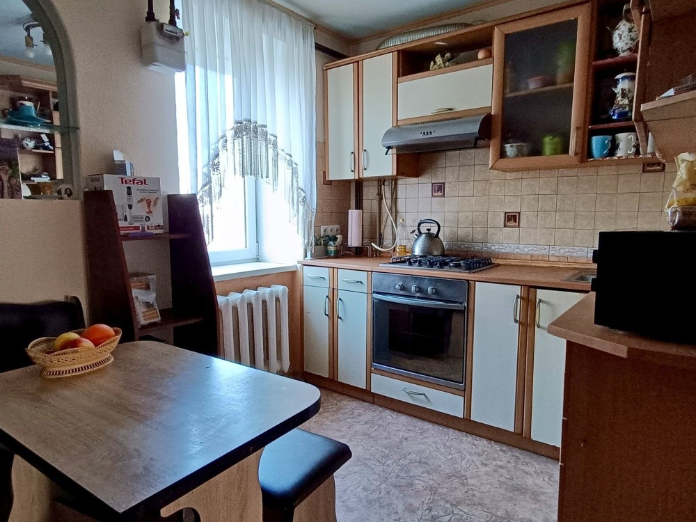 Кімнати всі окремі, є балкон, кухня 9м2 зручної квадратної форми і санвузол- сумісний і великий.
