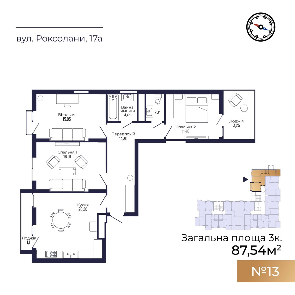 • Загальна площа 87.54 м2