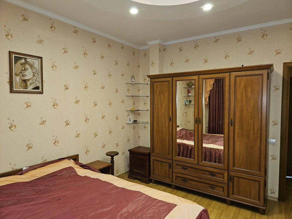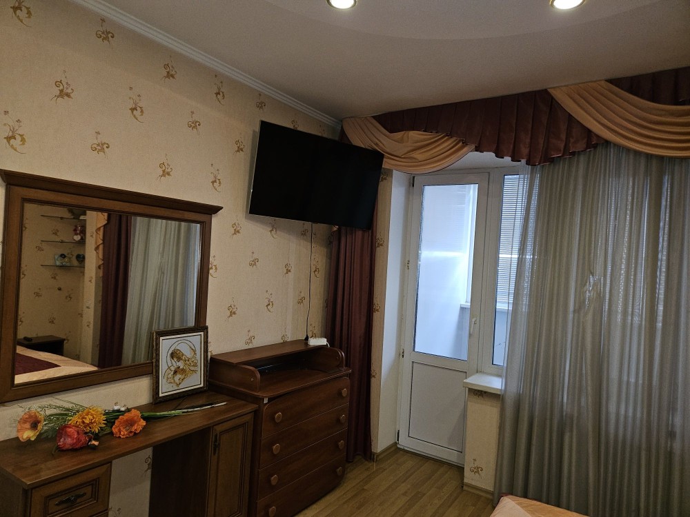 Оренда трьохкітнатної, Булаховського 5Д, 6/16 эт. 90/60/14 кухня, квартира здається вперше, якісний євроремонт, дві лоджії, шафи-купе, в спальні двоспальне ліжко, в залі великий диван, дитяча повністю обладнана під дитину. На кухні холодильник і морозильна камера, духова піч. Сигналізація. Гарна транспортна розв'язка.