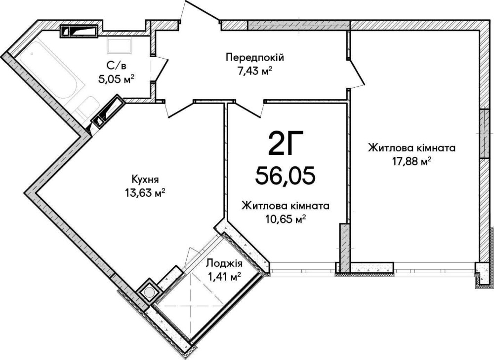 • Загальна площа 56.32 м2