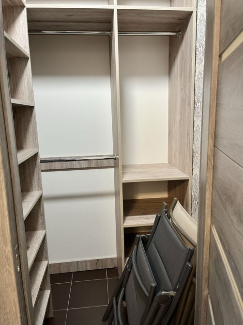 Двуспальная кровать, диван, техника. Гардеробная.