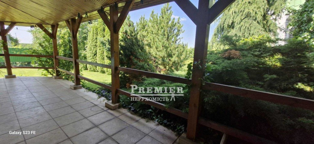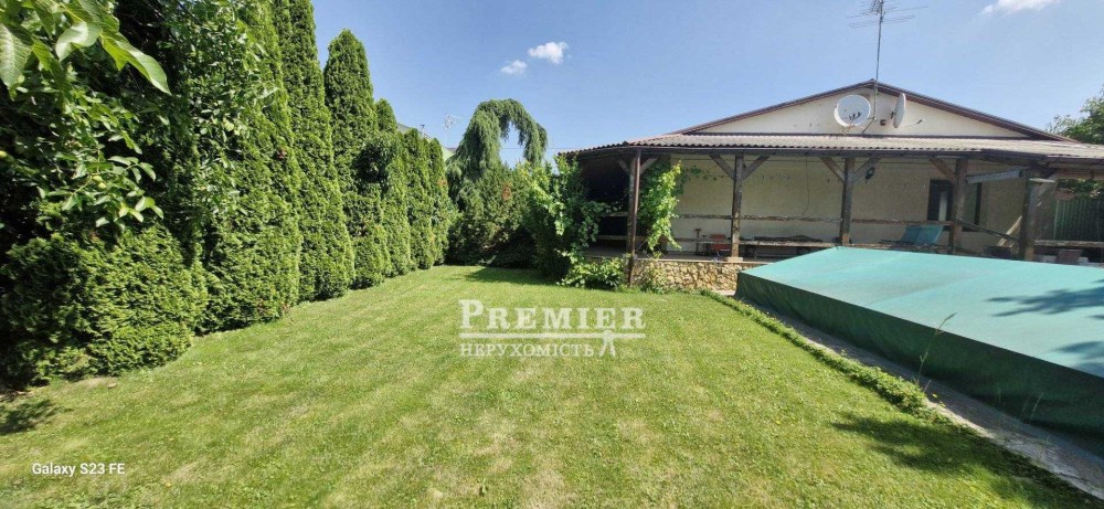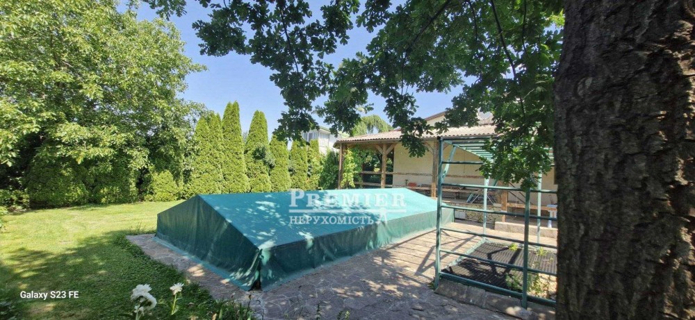 На ділянці 6 сотів, басейн на 60 куб. 3×8, веранда, тренажери, ландшафтний дизайн. Якісні меблі та техніка залишається.
