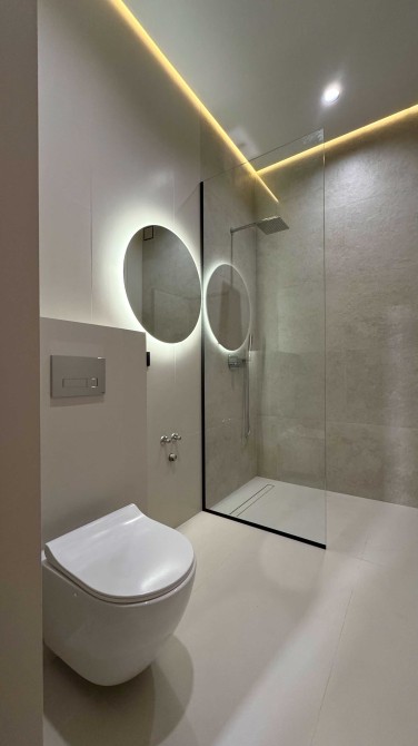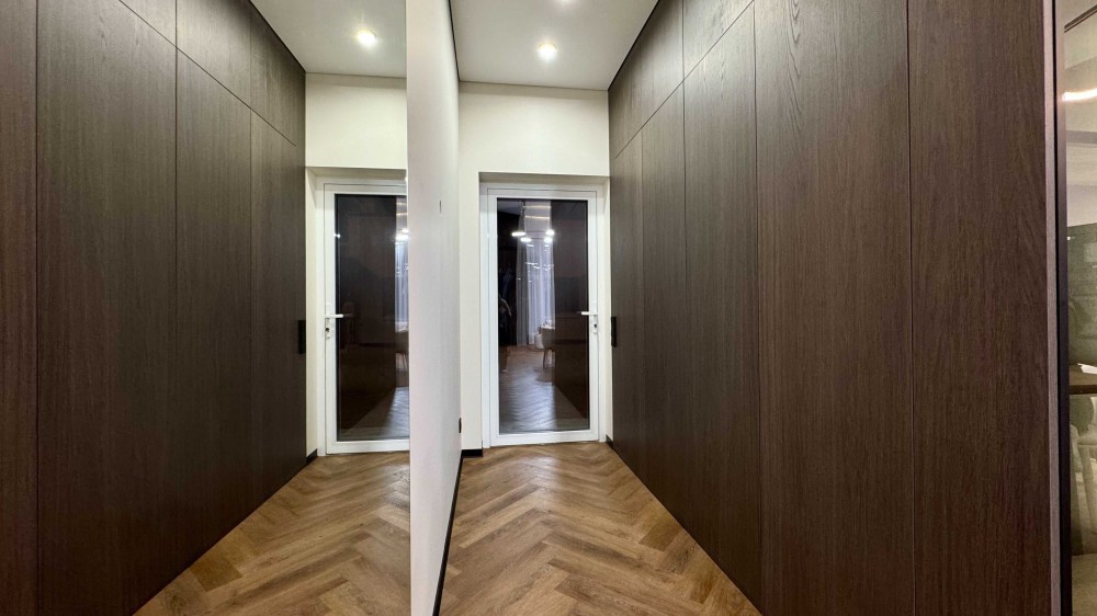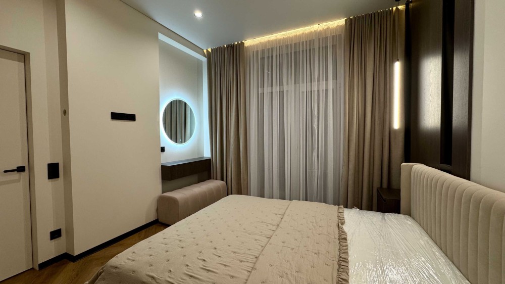 Виконаний якісний дизайнерський ремонт із використанням натурального каменю, німецького вінілу та різних сценаріїв освітлення в кожній зоні.