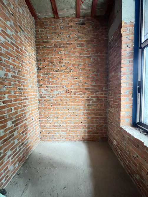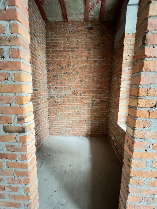 • Будинок побудований з червоної цегли.