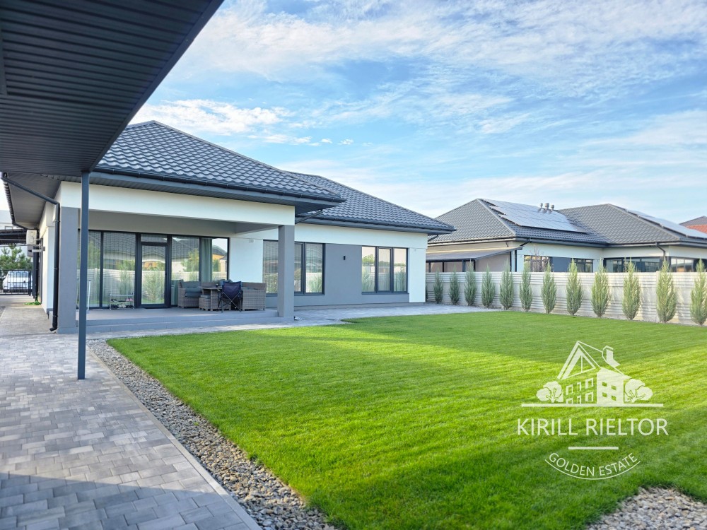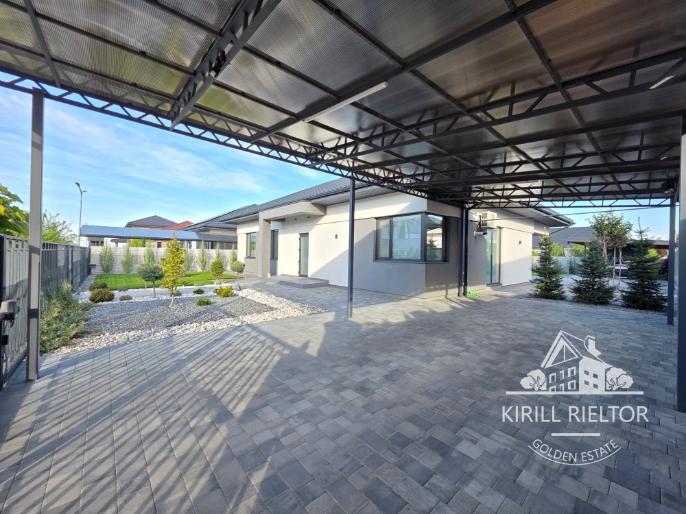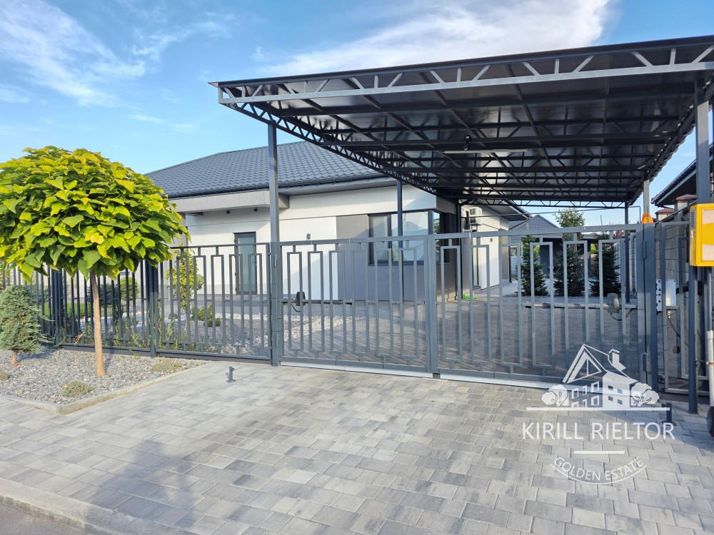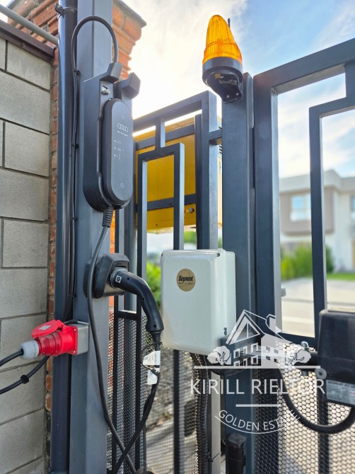 Приватизированный участок облагорожен рулонным газоном, высажены декоративные растения и деревья, сделан автоматический полив от скважины. Во дворе крытая парковка на два авто с автоматическими воротами, зарядной станцией под электрический автомобиль