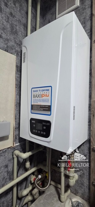 Отапливается газовим двухконтурным котлом и теплым водяным полом на первом этаже и санузле второго этажа