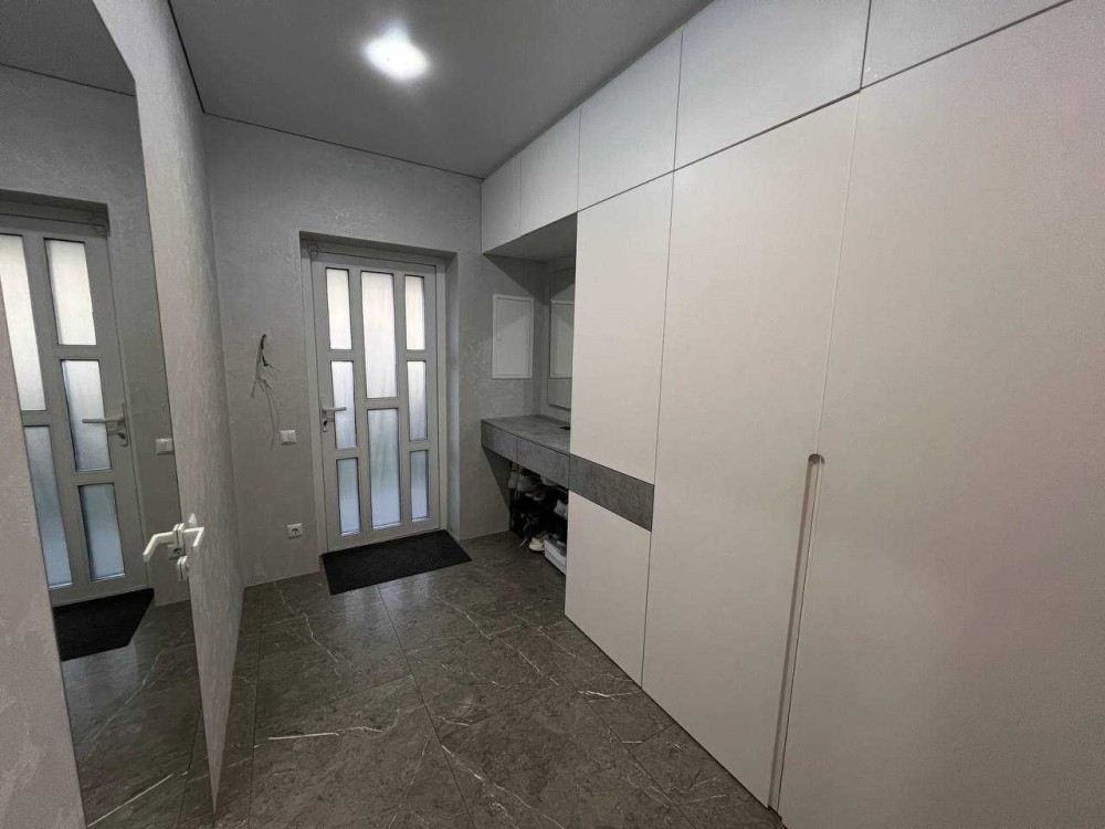 Меблі в кухню і коридор робились під замовлення по індивідуальному проекту, фасади - крашений матовий мдф, якісна фурнітура
