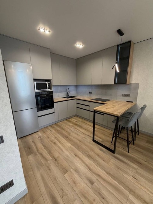 Квартира укомплектована: мікрохвильова піч, посудомийка, варильна поверня індукційна, духова шафа, холодильник, витяжка, пральна машина, телевізор, бойлер та кондиционер.