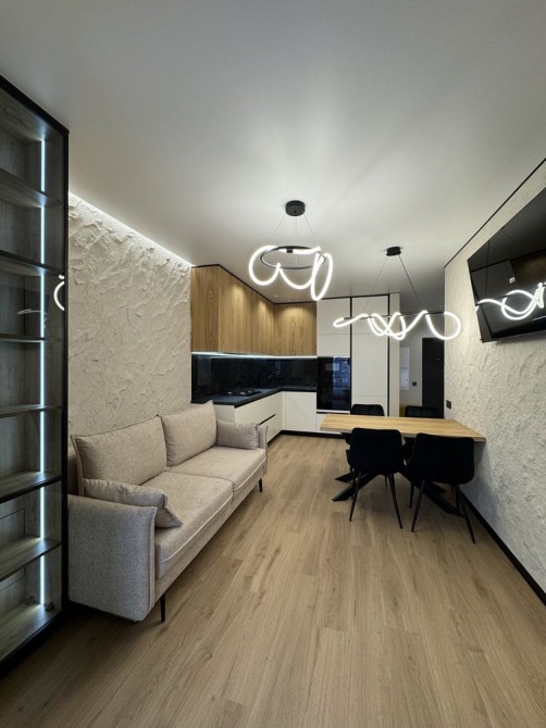 Сучасна декоративна штукатурка, дорогі меблі, фасади — шпон.