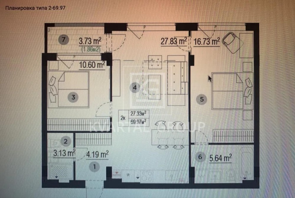 • Загальна площа 70 м2