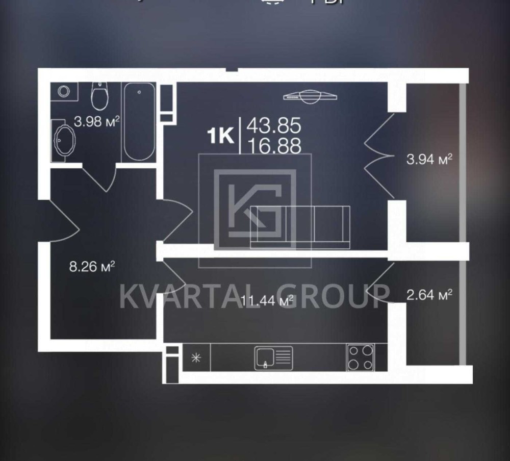 • Загальна площа 46 м2