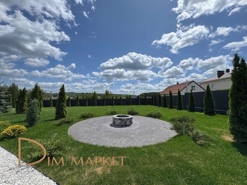 Загальна площа ділянки складає 15 соток, що дає можливість створити свій власний куточок природи з садом, городом або будь-яким іншим ландшафтом, який ви захочете. Розстелений зелений газон, посаджені зелені декоративні дерева.