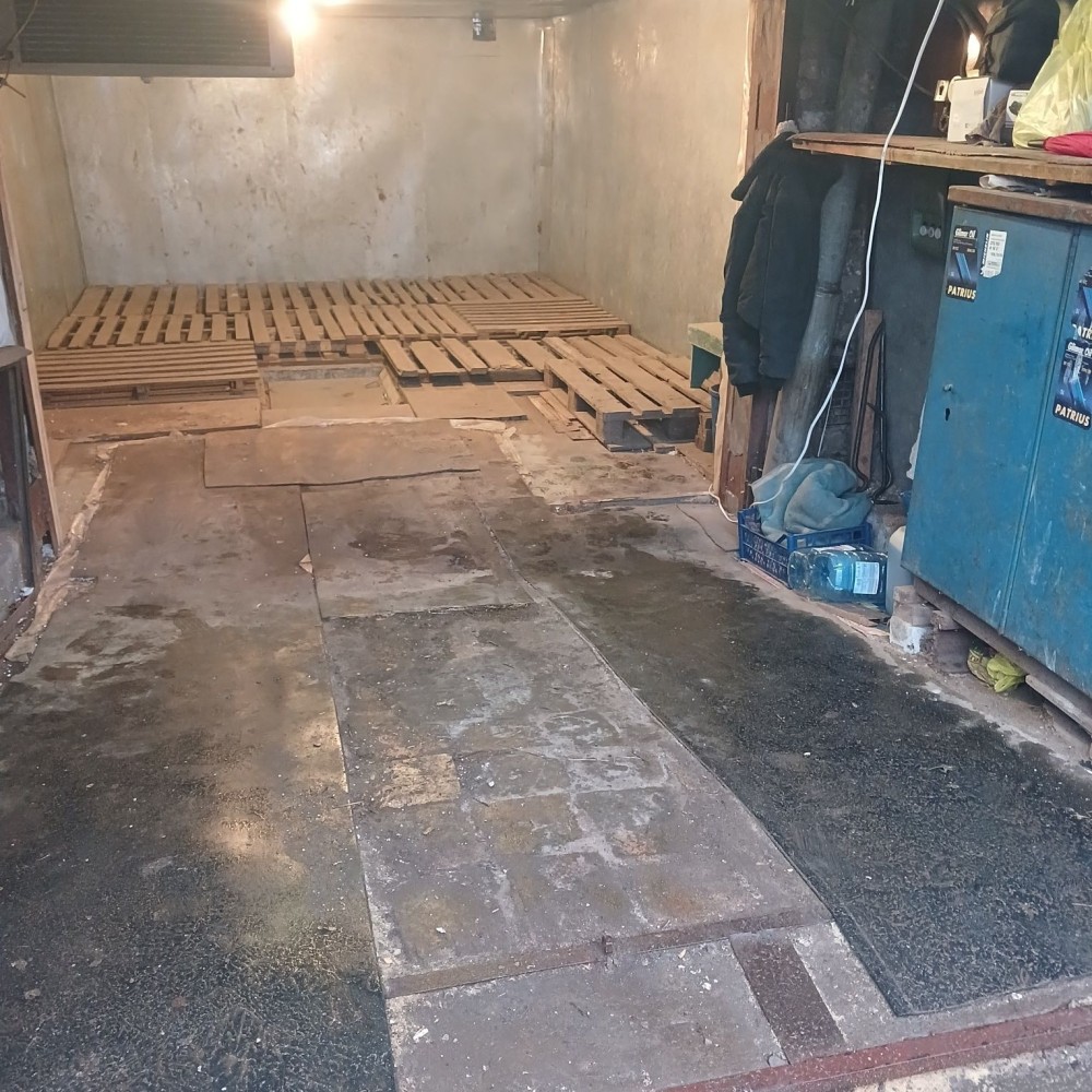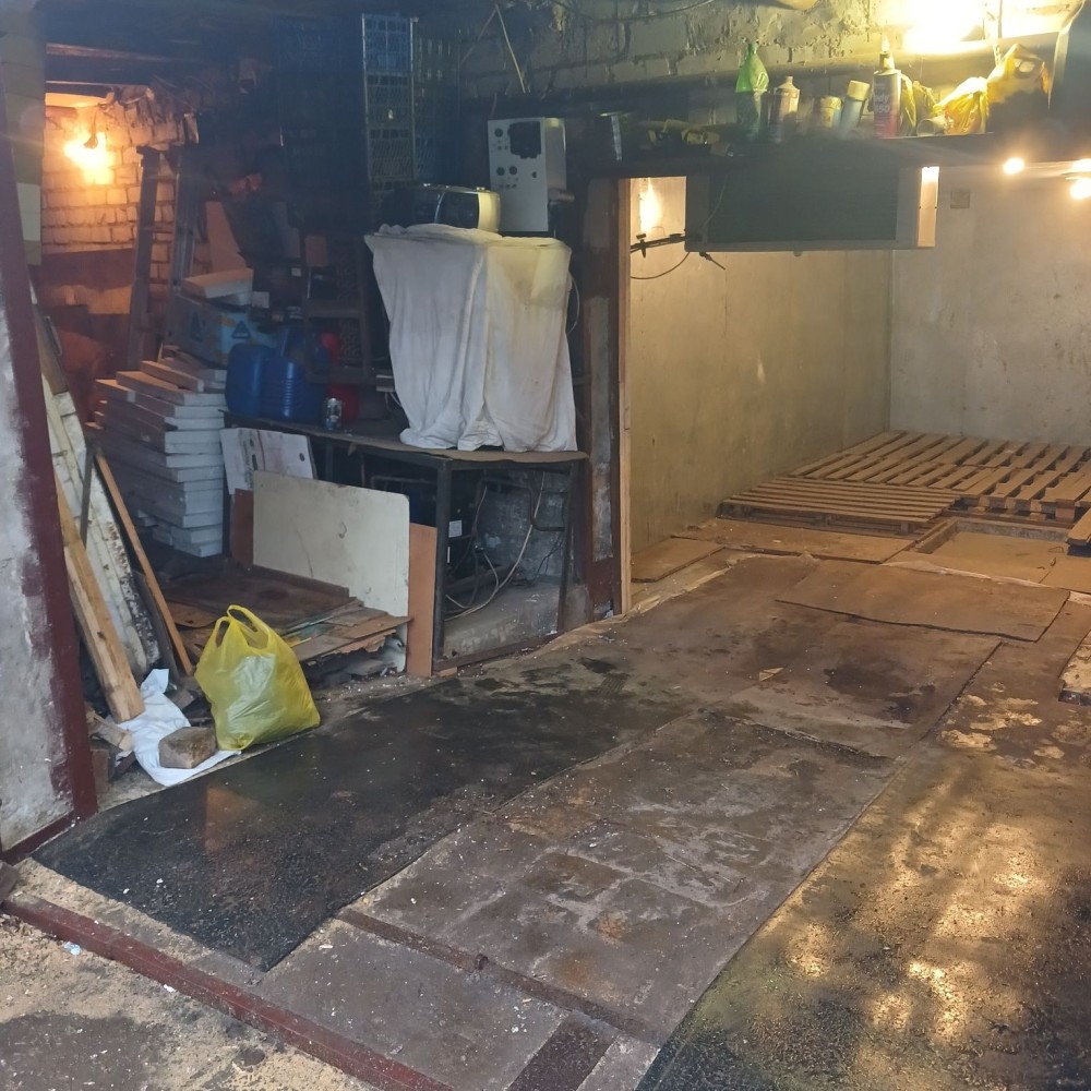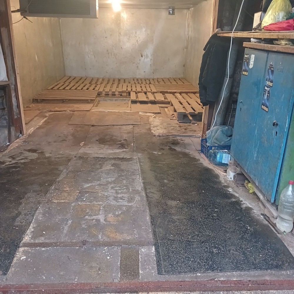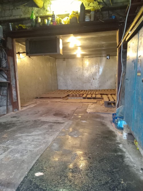 Металевий, підлога бетонна, утеплений керамзитом, є електрика. Великий погріб: 2 приміщення + прохід. Територія охороняється, вивозиться сміття, є естакада. Від власника. Торг.