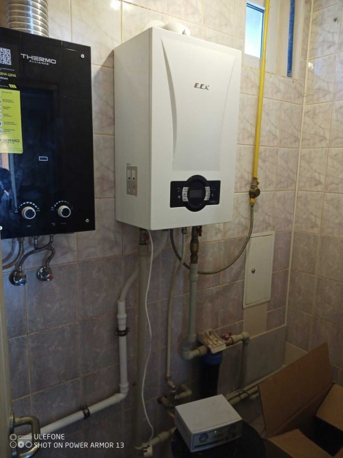 Є два види опалення, встановлені двоконтурний газовий та твердопаливний котли.
