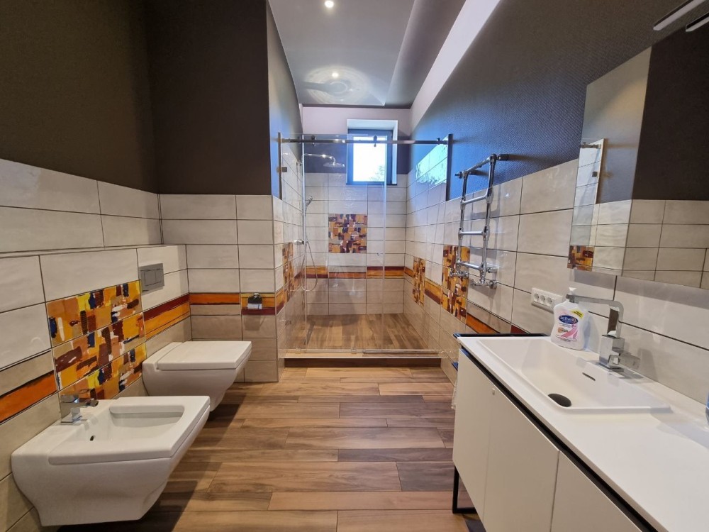 • Комфорт Кондиціонер, Ванна, Душова кабіна, Балкон, Тераса, Сигналізація, Охоронювана територія, Гараж, Автоматичні ворота, Спортзал