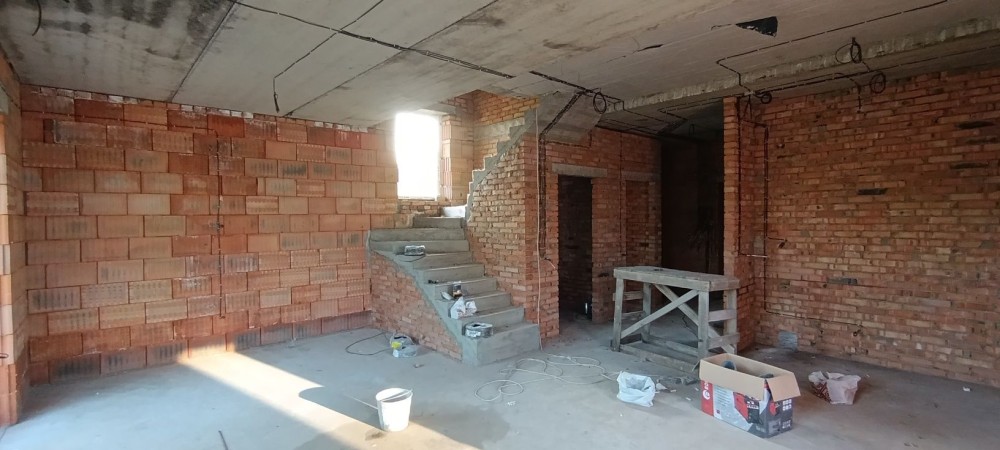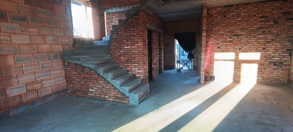 Продається новий індивідуальний житловий будинок котеджного типу загальною площею 131 м.кв. під чистове оздоблення, розташований в селі Крячки Фастівського (колишнього Васильківського) району Київської області на території нового житлового масиву із сучасною котеджною забудовою, що перебуває на відстані 20 км від станції метро «Теремки» міста Києва та за 1,5 км від міста Васильків. Житловий будинок складається з першого та мансардного поверхів. Загальна площа будинку із допоміжними спорудами становить 173,1 м.кв., з яких: а) площа будинку ‒ 131,0 м.кв., у тому числі житлова (основна) ‒ 94,1 м.кв. та допоміжна (підсобна) ‒ 39,6 м.кв.; б) площа тераси – 23,1 м.кв.; в) площа трьох балконів – 13,4 м.кв. (5,8 + 4,9 +2,7 м.кв.); площа ґанку – 5,6 м.кв. Котедж вміщує в собі 5 (п’ять) доволі просторих кімнат, 2 (два) санвузли (на кожному із поверхів), 1 (одне) технічне приміщення (котельня або бойлерна), 2 (два) коридори, 1 (одну) вітальню із виділеною еркером обідньою зоною, що поєднана з кухнею. Із вітальні є окремий вихід на велику терасу, з якої відкривається затишний вигляд на внутрішній двір. Кожна з трьох мансардних кімнат має окремий вихід на балкон. Над усією площею мансардного поверху розташоване містке горищне приміщення. Будинок приєднаний до електропостачання потужністю ‒ 12кВт (3 окремих фази). Має свердловину глибиною 55 метрів із фактичним дебітом (спроможною потужністю) ‒ 2,5 м.куб./год. та каналізацію септик з переливом на 11 м.куб. На усій площі першого (крім житлової кімнати) та у санвузлі мансардного поверхів встановлена система водяної теплої підлоги фірми «Rehau». По котеджу розведені: опалення, водопостачання і каналізація. В будинку передбачена можливість встановлення камінної топки, а також приєднання котеджу до газорозподільної мережі та всесвітньої мережі Інтернет. Індивідуальний житловий будинок розташований на земельній ділянці площею 0,075га з цільовим призначенням – (02.01) для будівництва і обслуговування житлового будинку, господарських будівель і споруд (присадибна ділянка). Під житловою забудовою перебуває 0,0115га земельної ділянки, решта 0,0635га займає просторий двір. Кадастровий номер земельної ділянки: 3221487004:03:006:0328. Земельна ділянка огороджена парканом із монолітного фундаменту, що опорядковане металевим штахетом із обох боків та металевим профілем з тильної та фасадної сторін. Заїзд у двір має відкатні ворота. На території двору (перед будинком) облаштоване загальне паркомісце на 2 (два) автомобіля, решта двору засіяне газонною травою. Котедж побудований з якісних матеріалів за проектом європейського архітектурного бюро. Так, фундамент, перекриття та міжповерхові сходи ‒ монолітні. Стіни будинку збудовані з газоблоку AEROC D500 (товщиною 300мм), що утеплений пінопластом 100мм. Внутрішні міжкімнатні перегородки виконані із цегли. Дах ‒ металочерепиця фірми «Ruukki», що утеплений мінераловатними плитами загальною товщиною 200мм. Вікна вироблені з профілю фірми «Rehau» серії EVRO 70. Фасад котеджу покритий акриловою штукатуркою. Будинок за усім периметром має вимощення шириною 0,9 метри, що облаштоване фігурними елементами мощення (ФЕМ). Зручне ергономічне планування будинку, а також наявність високих стель обох поверхів дає можливість відчувати себе вільно і затишно. Завдяки правильному утепленню зовнішніх стін будинку, у ньому прохолодно влітку та тепло вз