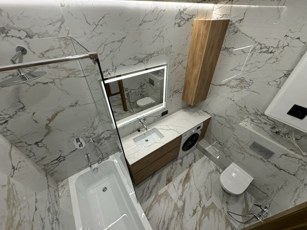Підігрів підлоги, вся необхідна техніка(пральна, сушильна, посудомийна машини, кондиціонери, холодильник, мікрохвильова, духова шафа, бойлер, телевізор)