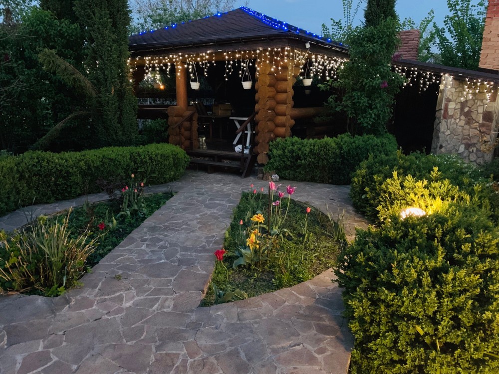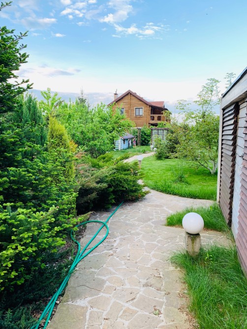 Новий масив, поряд сусіди, асфальтований підʼїзд , на ділянці основний будинок, гостьовий будинок з гаражем 6*9 м( на першому поверсі гараж, технічне приміщення, та кімната з с/у для персоналу. , на другому поверсі гостьовий будинок без оздоблення), котельня( 15м2, гідроакумуляторальтор -2 шт, фільтр для води Ecosost( колба 1252), бойлер непрямого нагріву 200 л, електрокотел , генератор Geko, є вихід труб для підключення твердопаливного котла, а також закладена теплотраса від котельні під будинком для можливості монтажу басейну), альтанка( з сибірського кедру) з барбекю зоною в яку входить барбекю, коптильня, мурована плита, тандир, підведена вода), на ділянці біоочистна система Ecoline з дренажним полем 100 м.п., на ділянці розведені водо, та електро розетки, ландшафтний дизайн( фруктовий сад, різні види хвойних рослин від кедру до звичайної ялинки, велике різноманіття квітів, які починають квітнути з ранньої весни до пізньої осені), дитяча площадка з дитячим будиночком зі зрубу, дуже зелена ділянка, поряд ліс.