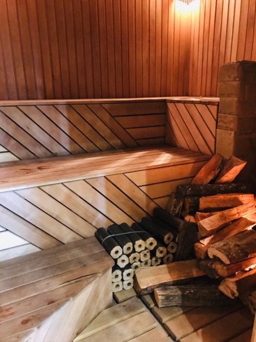 У основному будинку: 3 кімнати , з двох - балкони , 3 санвузли, гідромасажна ванна Balteco, душова кабіна з гідромасажем Balteco, баня 3,,0*2,5 на дровах, є відро водопад,камін з водяним контуром на 19квт Lechma, тепла підлога весь перший поверх, та с/у на другому поверсі, висота першого поверху 3.10, другого 2,8, підвал,