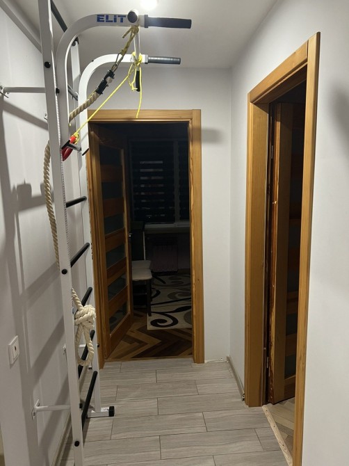 Квартира повністю мебльована: є велике та зручне ліжко, шафи, розкладний диван у вітальній.Дитяча кімната також мебльована