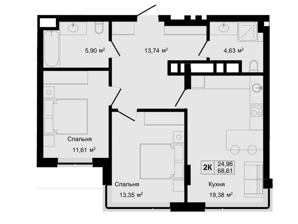 • Площа кухні 19.38 м2