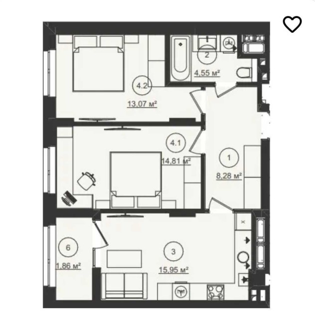 • Загальна площа 58.55 м2