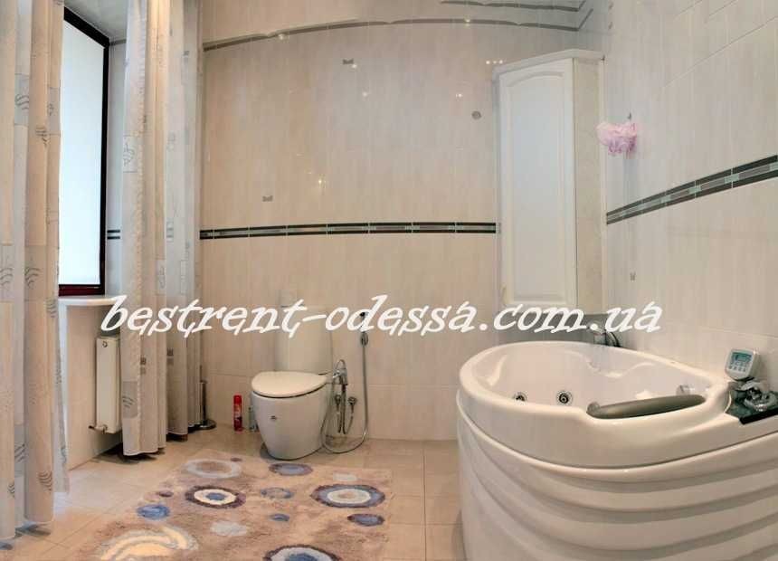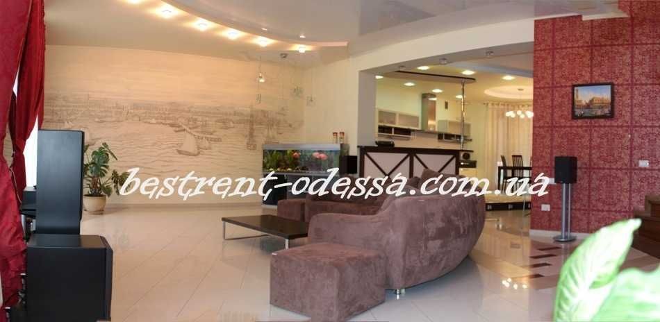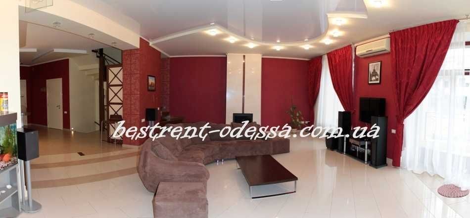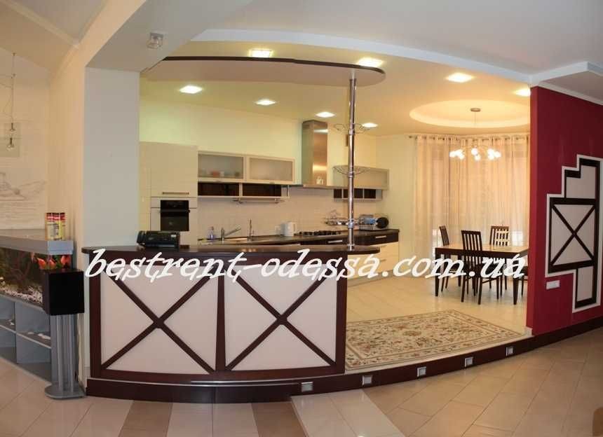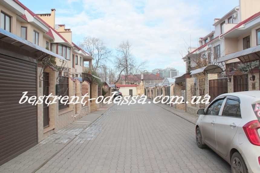 К аренде предлагается коттедж на охраняемой территории, ул. Педагогическая, Аркадия, район 7-6 Фонтана. 200 м., три этажа-цокольный этаж и два жилых: первый этаж-просторная кухня-студия с камином и выходом на задний двор, где есть садовая мебель и барбекю; второй этаж-три спальные комнаты и ванная комната. балконы. В цоколе прачечная, сауна, гараж. На переднем дворе второе парковочное место. Дом полностью укомплектован мебелью и техникой. Автономное отопление. Дворик пару соток.