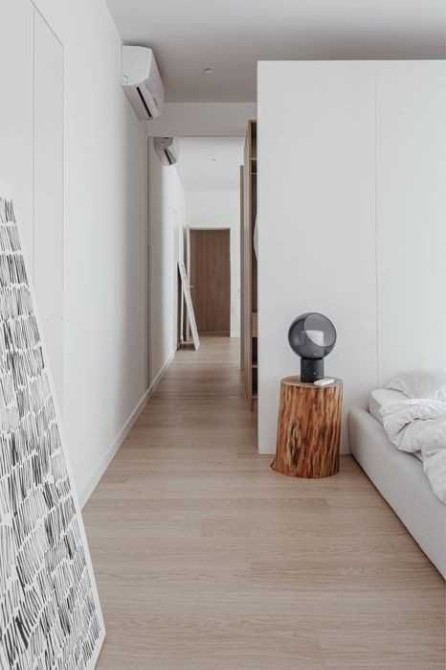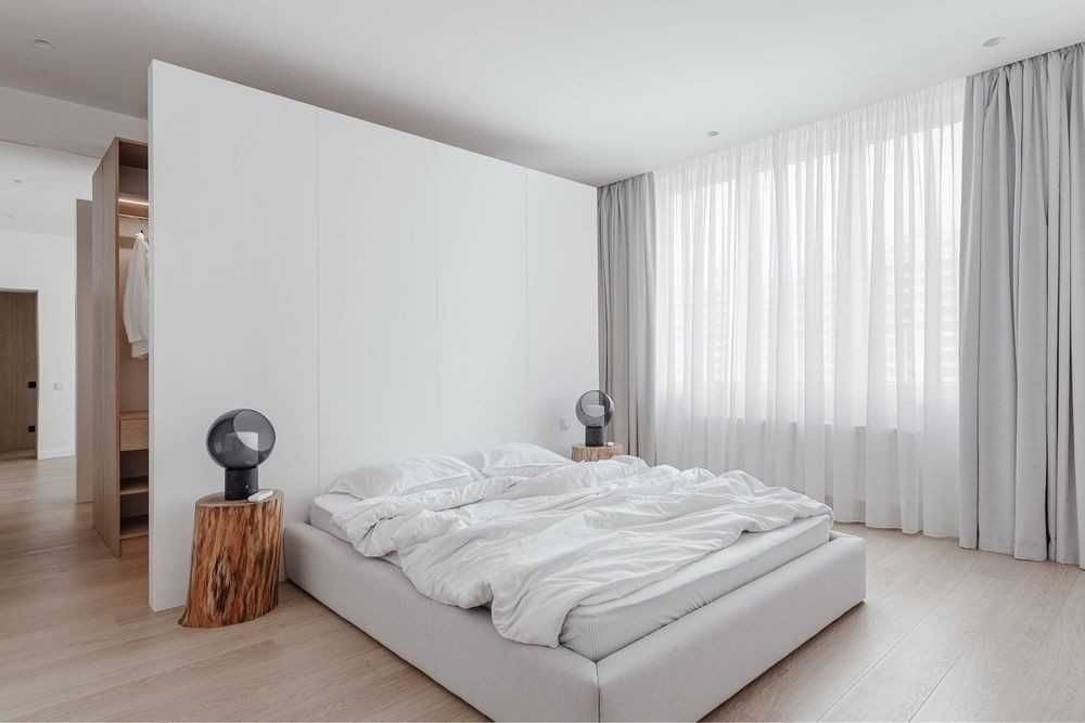 19 эт./23 эт. дома, 80 м., студия, спальня с гардеробной и детская/кабинет, открытый балкон. Гардеробная, шкафы. Кондиционирование, теплые полы.