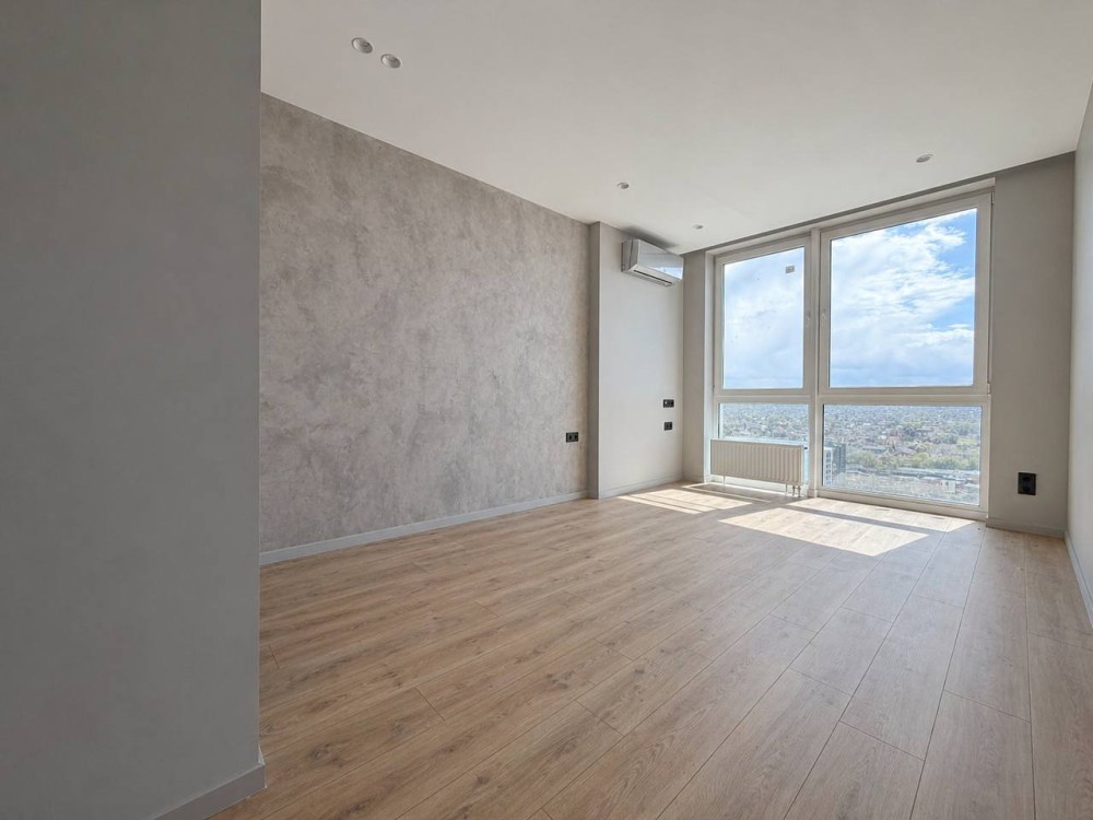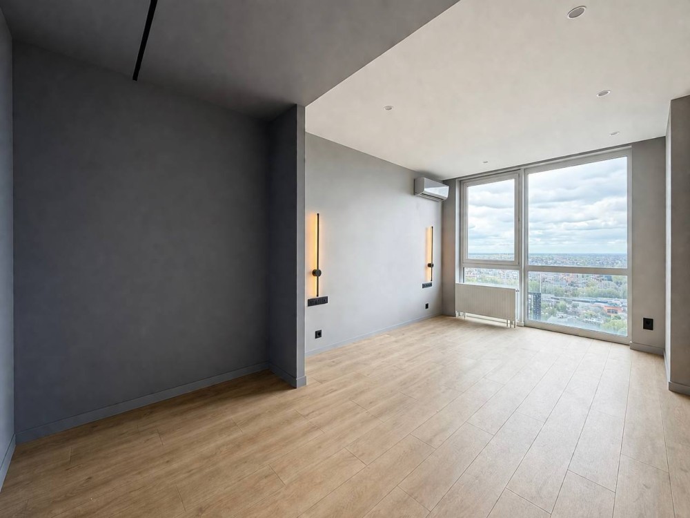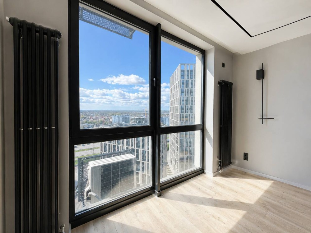 Видова квартира з панорамними вікнами в сучасному будинку.