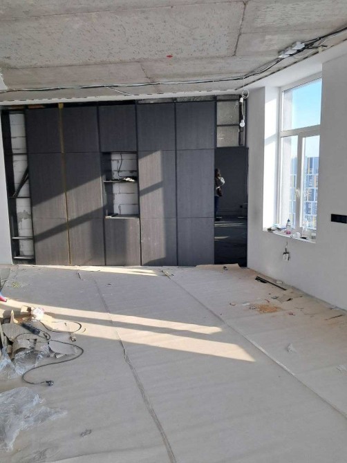 Залишилось зробити: докласти ламінат, змонтувати натяжну стелю, замовити кухонний острів з мийкою, зібрати міжкімнатну перегородку . Встановити сантехніку, техніку та меблі.
