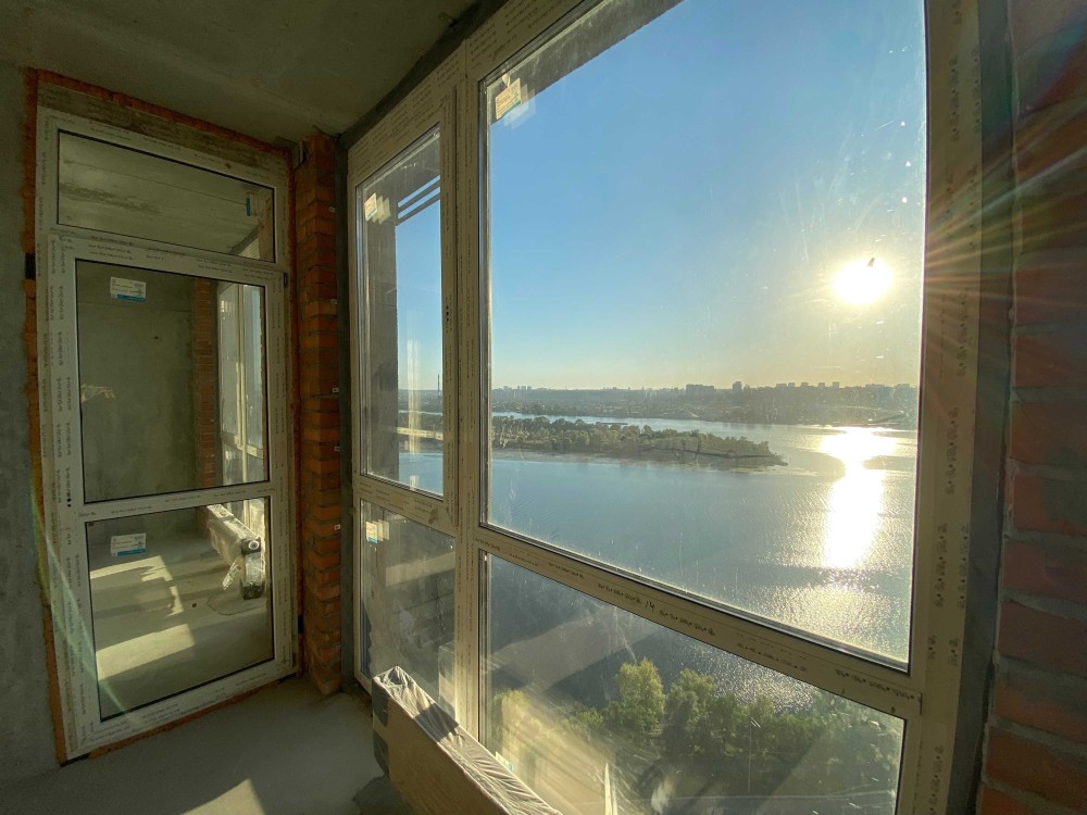 Квартира розташована на 22-му поверсі 26-поверхового будинку, що відкриває неперевершену панораму на Дніпро та правий берег Києва. Завдяки великим панорамним вікнам від підлоги до стелі помешкання наповнене сонячним світлом упродовж дня.