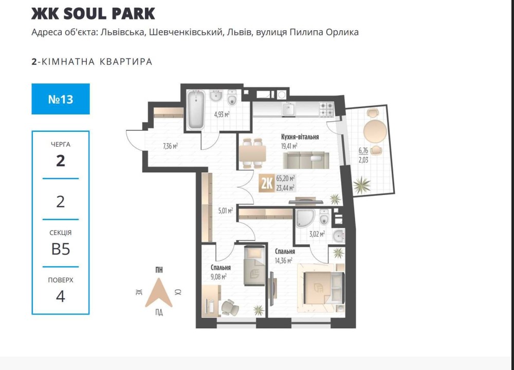 Продаж 2-кім квартири в ЖК Soul Park від надійного забудовника Lev Development.