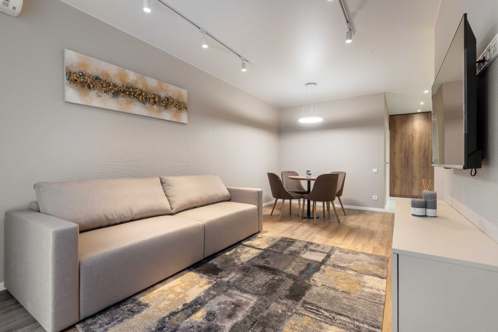 ЖК Славутич, вул. Зарічна, 4, 2 корпус. Видова 2 кімнатна квартира, якісний ремонт, кухня вітальня, спальня, велика вбиральня. 25/26 пов, 56 м2. У квартирі є все необхідне. Поруч ст. м. "Славутич" – 3 хвилини, магазини, кафе, ресторани.