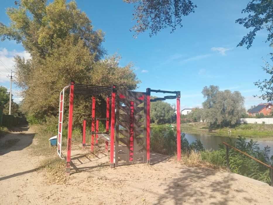 Напроти річка, пляж, бесідка, спортивна зона.