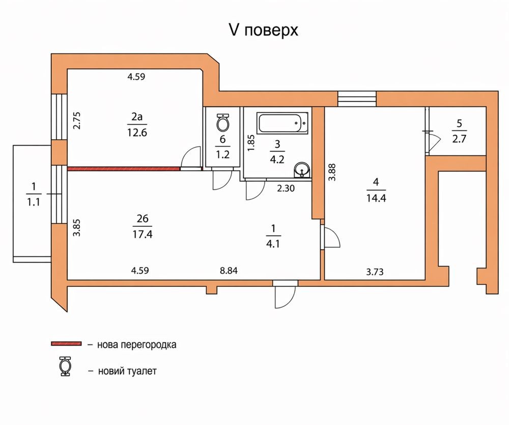 • Загальна площа 57 м2
